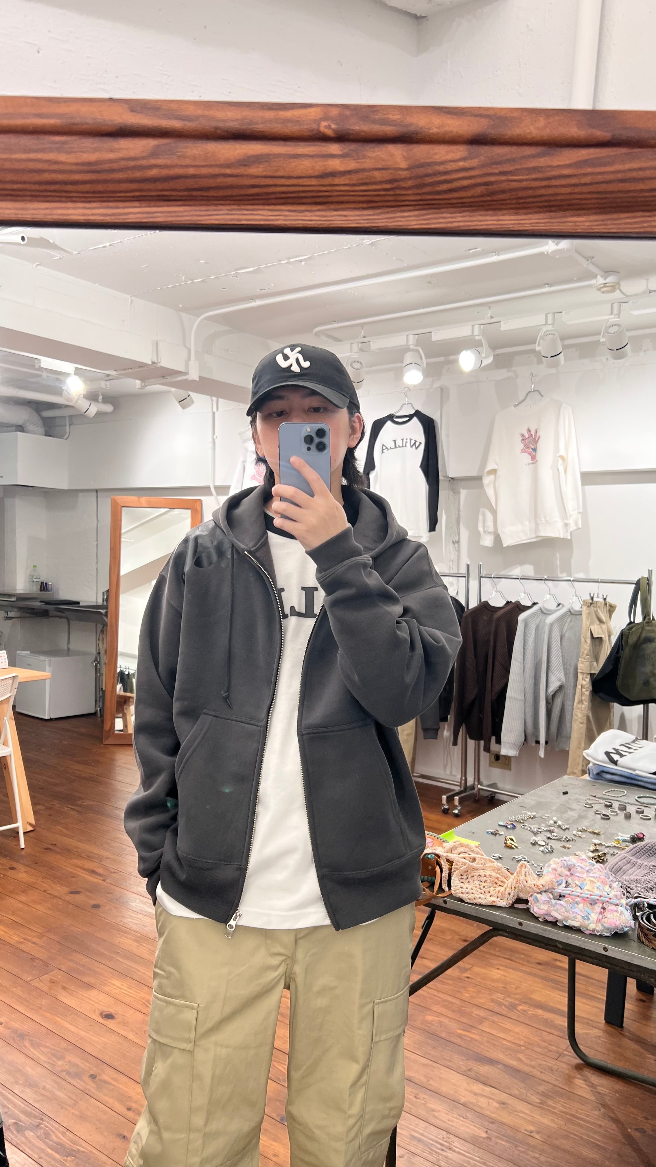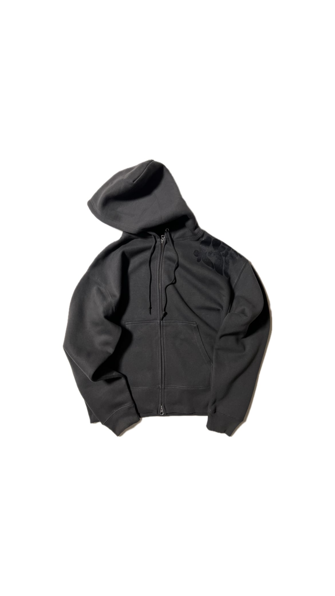 ショート丈のジップアップフーディーです。